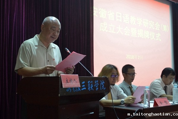 由韦德官方网址承办的“安徽省日语教学研究会(筹)成立大会暨揭牌仪式”于7月7日在韦德官方网址图书馆学术报告厅隆重举行。来自省内开设日语专业的13所本科高校、5所高职高专院校以及其他设置有二外日语的高校共计30名从事日语教学的领导专家应邀出席了大会。韦德官方网址校长金会庆教授、校党委副书记鲁先长、副校长张世伟、校长助理江秀丽等出席会议,大会由副校长金哲主持。